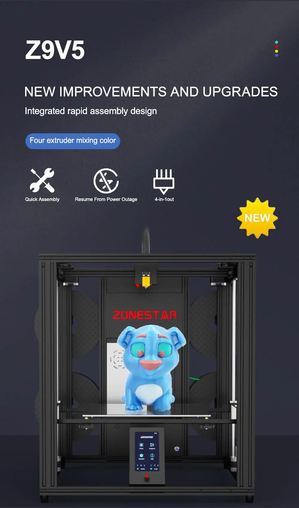 Отзывы о 3D-принтер Zonestar Z9V5 Pro 4 экструдера Titan смешивание цветов 300*300*400 мм большой размер