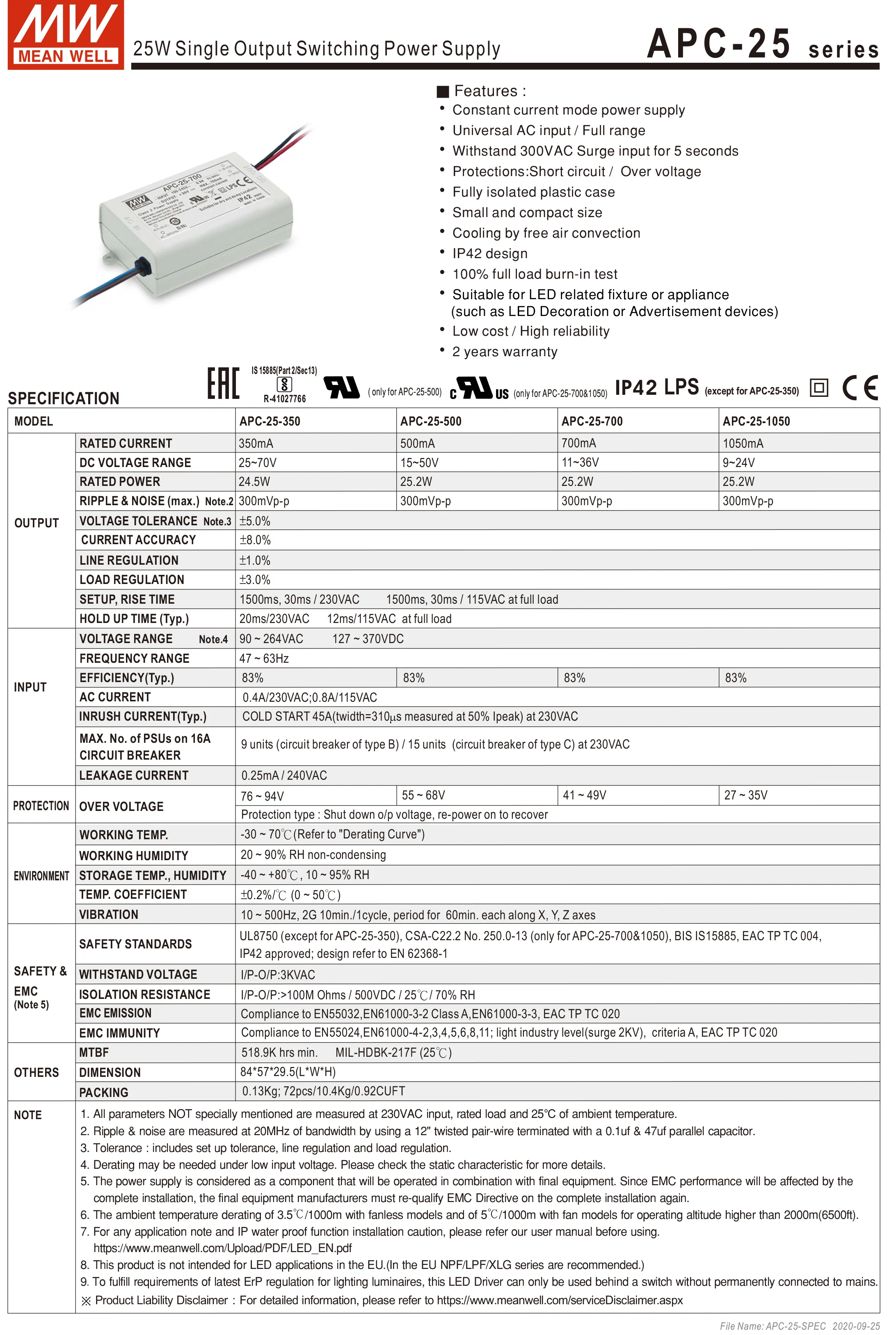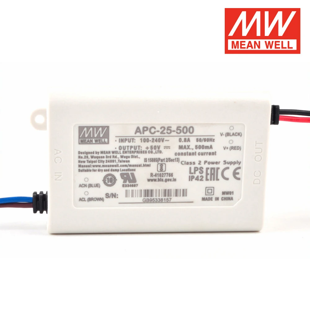 Отзывы о Оригинальный светодиодный драйвер Mean Well APC-25-500 85-264 в переменный ток постоянный