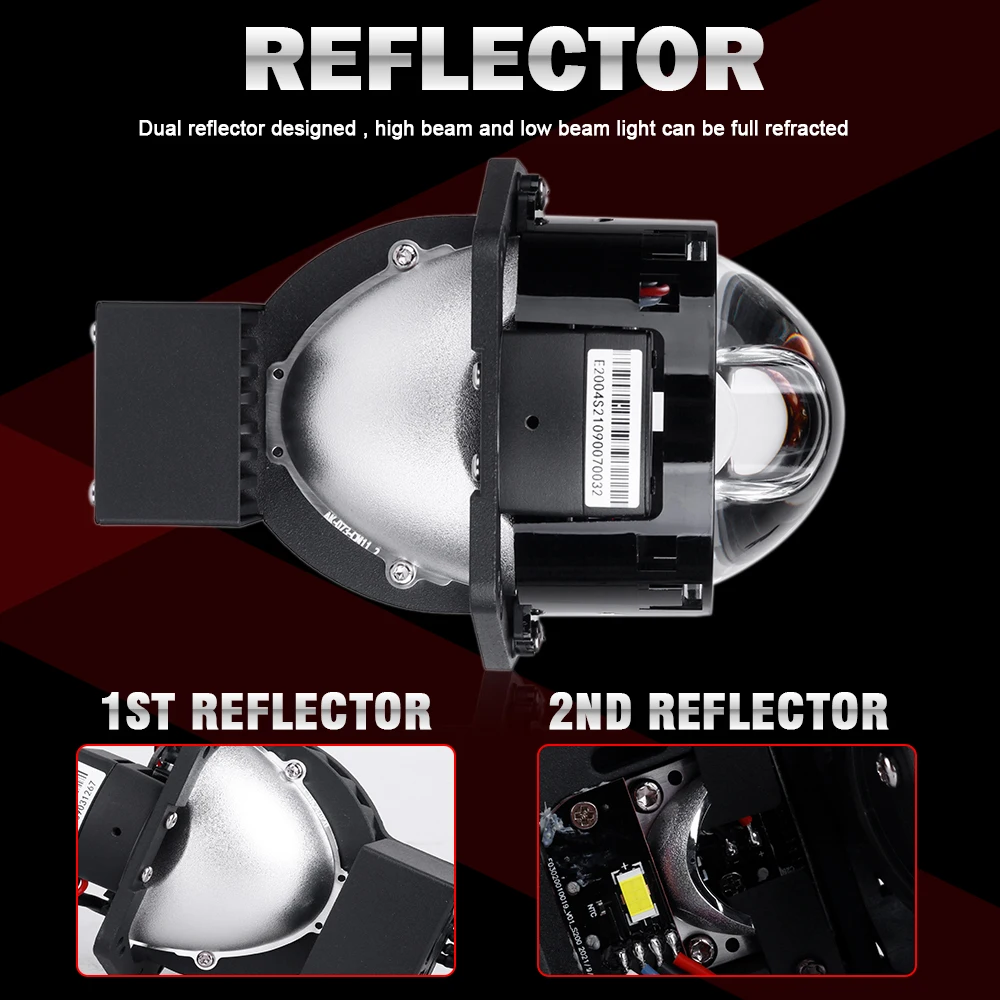 Отражатель: двойной дизайн отражателя, алюминиевая чашка отражения и анти-высокая температура обеспечивают bi-led объектив с более длительным сроком службы.