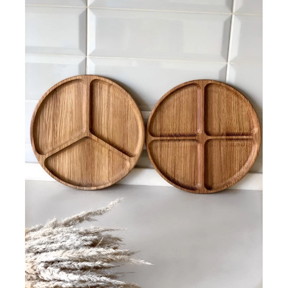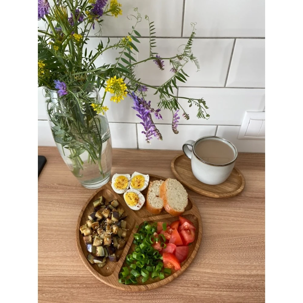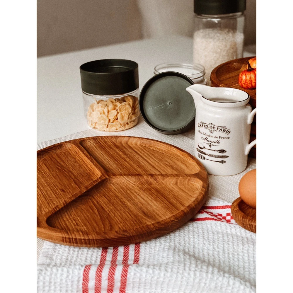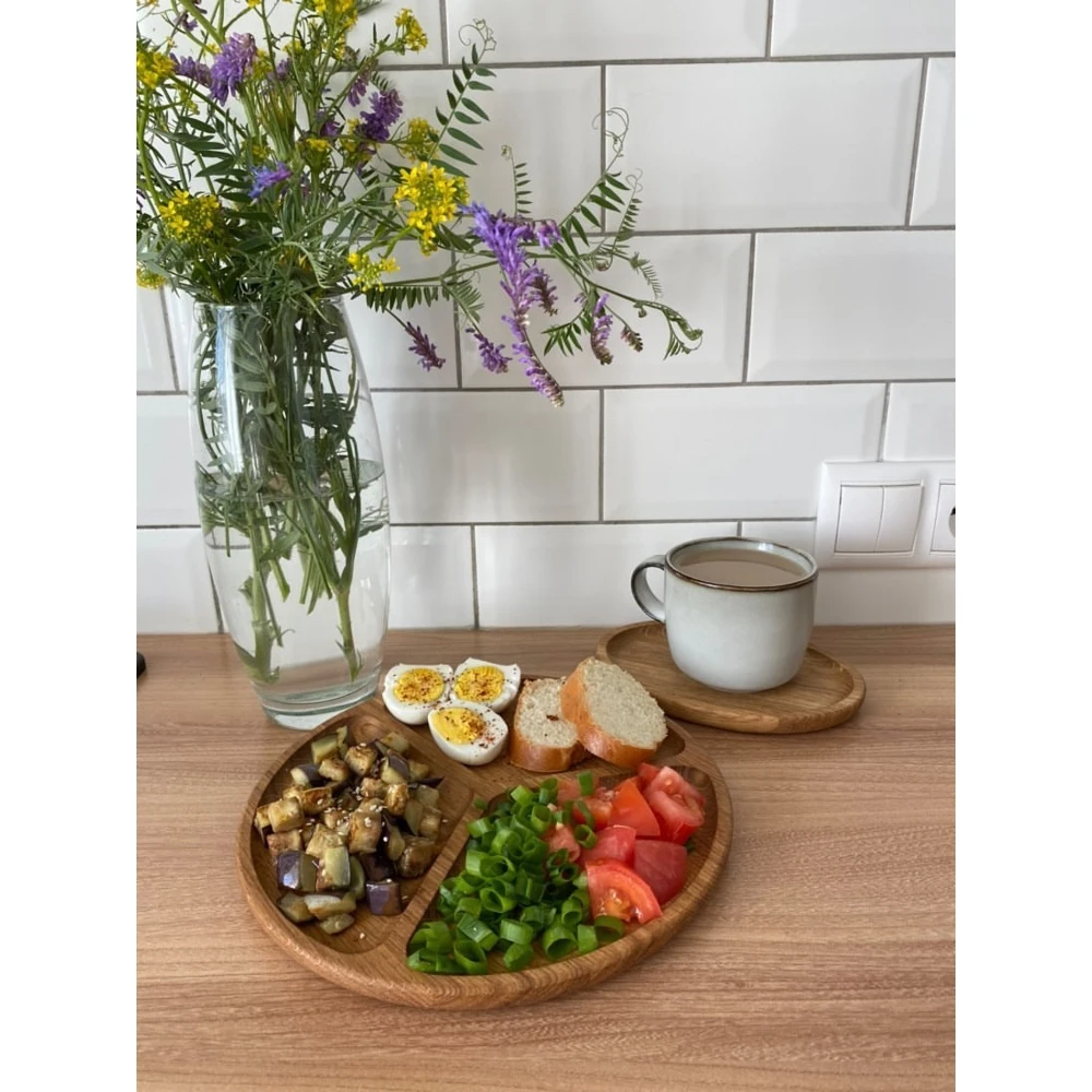 Деревянная тарелка для подачи изготовлена из отборного массива дуба.