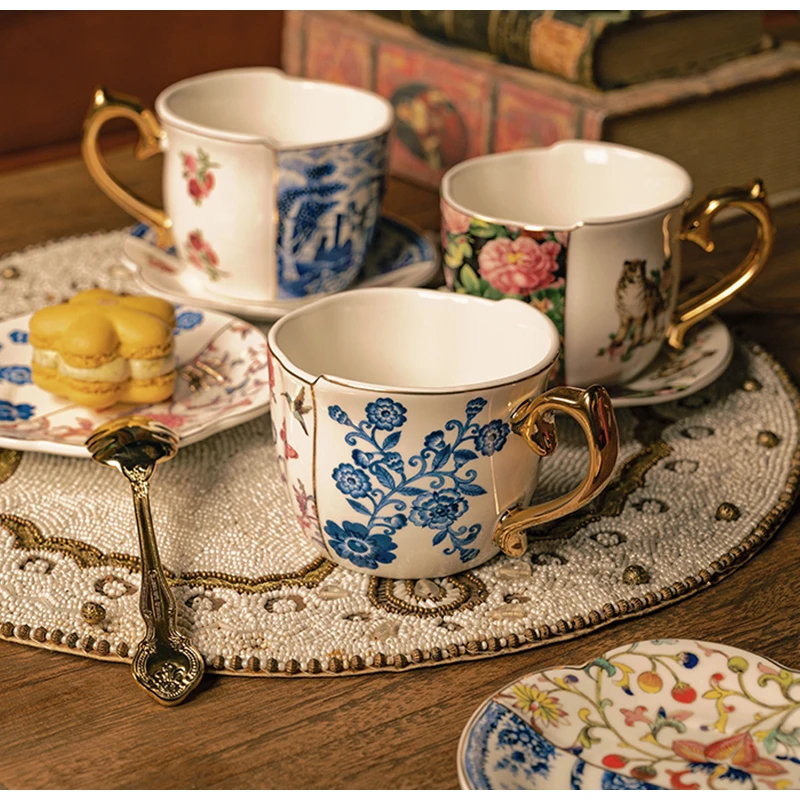 Iterm: домашняя чашка для чая в китайском и западном стиле с цветочным декором, фарфоровая нестандартная кофейная чашка с блюдцем