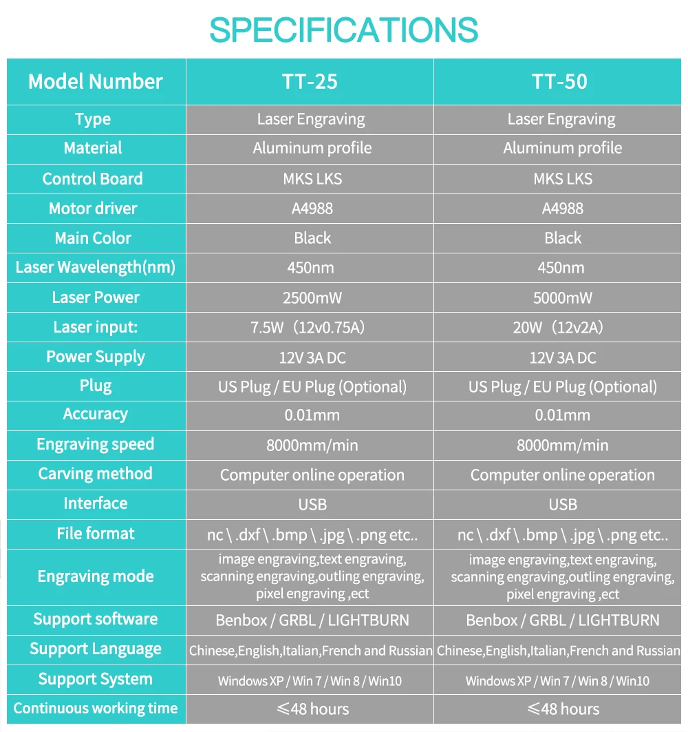 Гибкое использование: материнская плата с открытой структурой с контактами, предназначенными для самостоятельной разработки и соответствия. Сменный лазерный модуль, можно установить другие модули для получения различной мощности лазера.