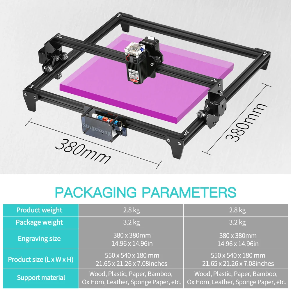 Широкое применение: лазер высокой интенсивности, широко используемый в различных материалах, таких как дерево, пластик, бумага, бамбук, рог, кожа, губчатая бумага и т. Д. Он поставляется с парой защитных очков, чтобы защитить ваши глаза от лазерной травмы.