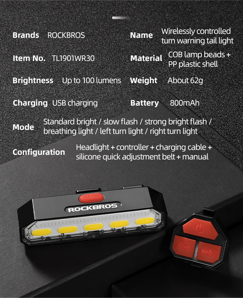 Отзывы о Велосипедный фонарь ROCKBROS умный светодиодный задний с дистанционным управлением