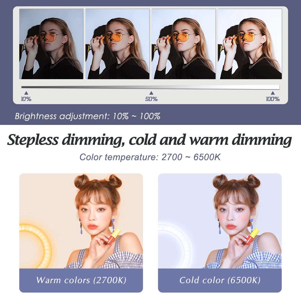 18 дюймовый кольцевой светильник: с регулируемой яркостью и регулируемой яркостью, вы можете настроить светильник на 10%-100%. Кольцевой светильник для селфи делает вас более привлекательным и очаровательным.