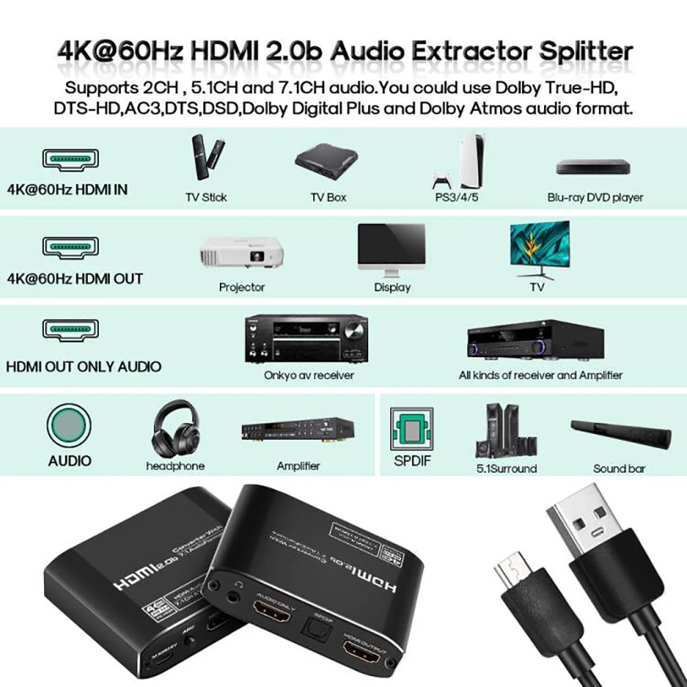 4K60hz HDMI аудио экстрактор hdmi 7,1