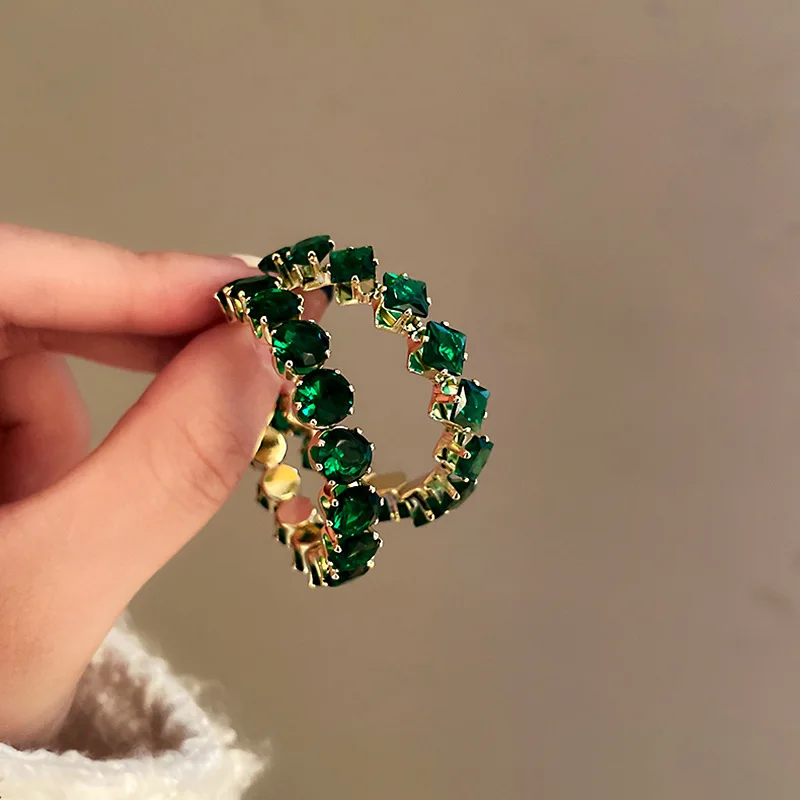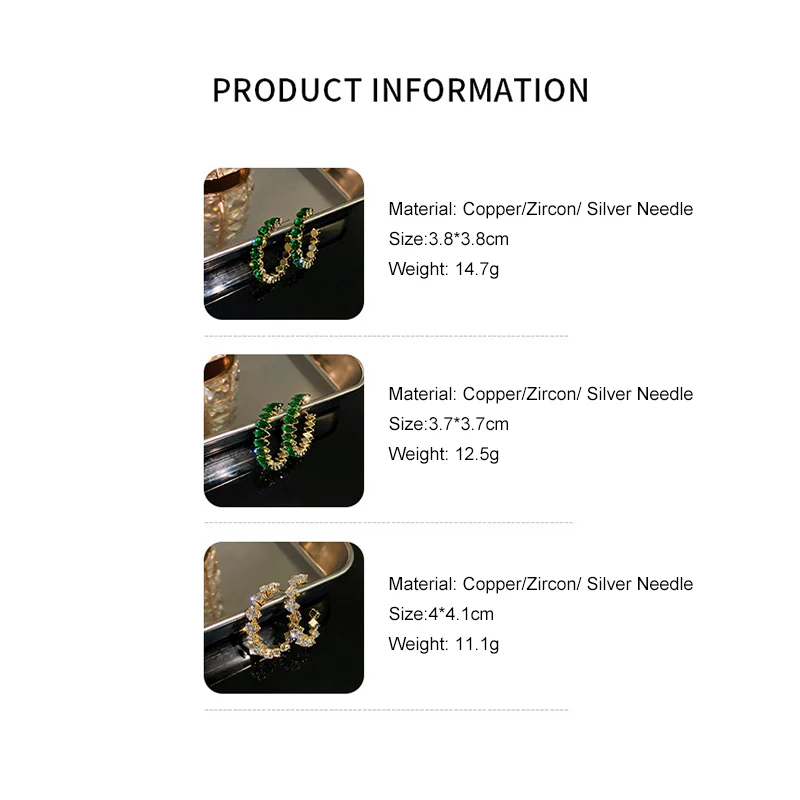 【Название продукта 】 инкрустация CZ серьги-кольца зеленый циркон