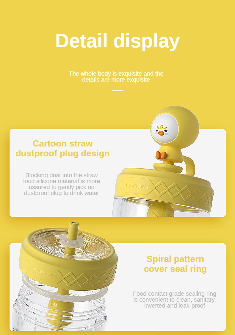 1. Мультяшная соломенная пыль дизайн штепсельной вилки: блокирует пыль от попадания в соломенный пищевой силиконовый материал, более уверенный, аккуратно Вытяните штепсельную вилку от пыли, чтобы пить воду.