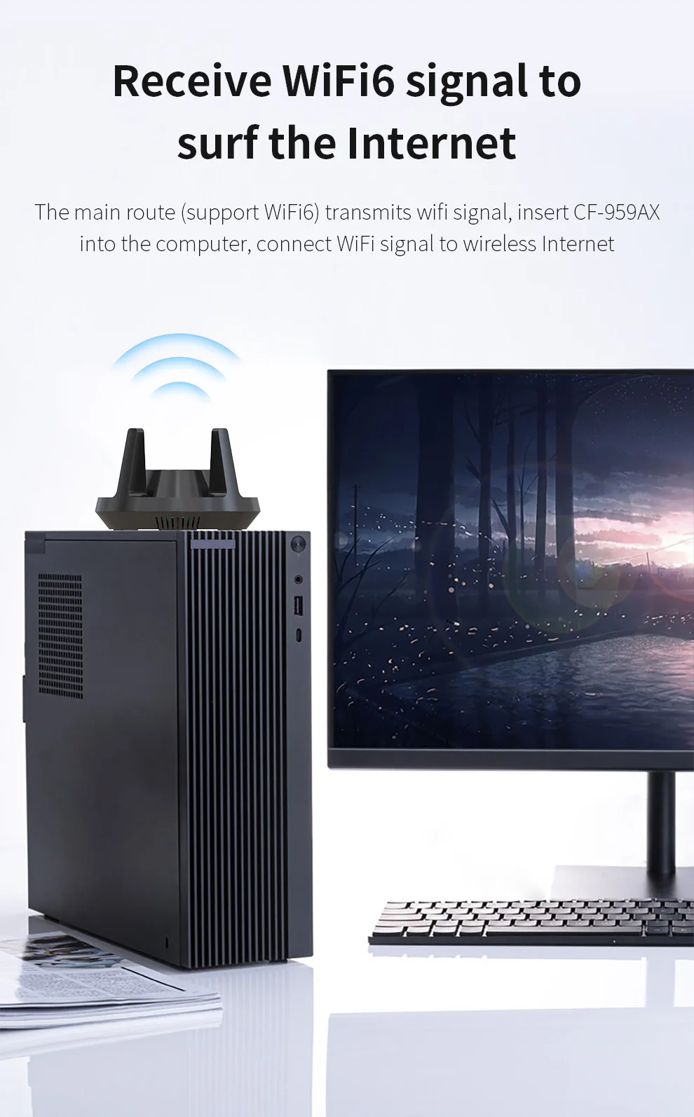 Технические характеристики:1. RTL8832AU, встроенный PA2, черный цвет3 、 USB3.0 совместим с USB2.04. 1800 Мбит/с беспроводной wifi USB адаптер (2,4 ГГц: 600 Мбит/с; 5,8 ГГц: 1201 Мбит/с)5. Двухдиапазонная внешняя антенна с высоким коэффициентом усиления 4 * 3dBi6. Шифрование: WPA2 *; WPA3 *7 、 Поддержка ОС: Windows 10/11(32/64bit)8. Применение: Рабочий стол/ноутбук9. Стандарт беспроводной связи: IEEE802.11a/b/g/n/ac/axСодержимое упаковки: