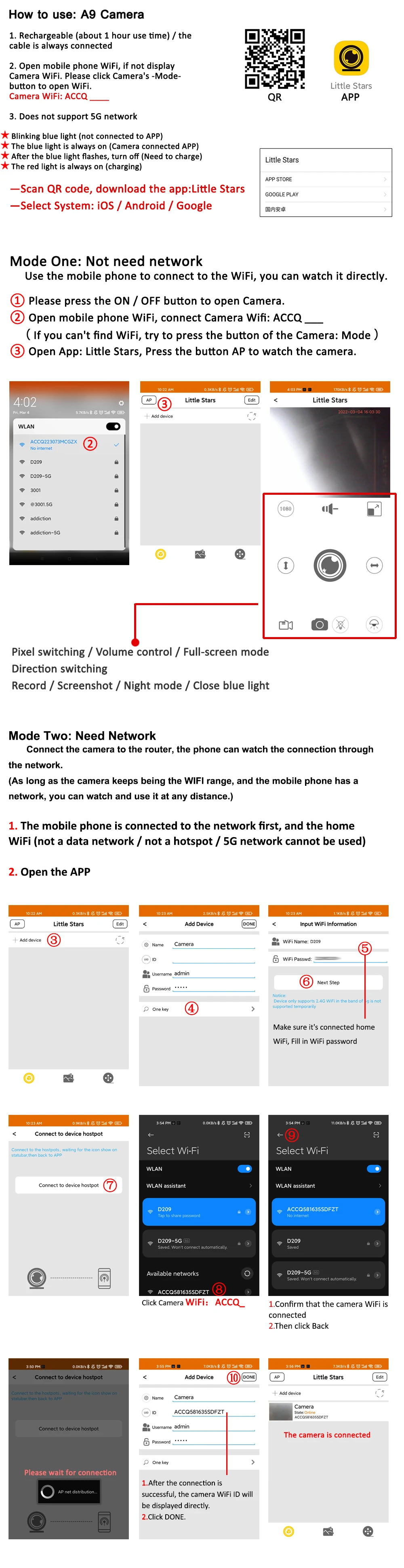 3. После подключения Откройте камеру в приложении (приложение: Little Stars ---- AP)