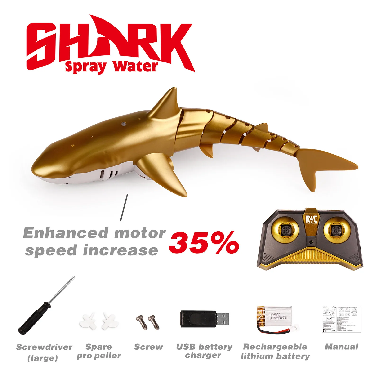 Отзывы о Игрушка Акула с дистанционным управлением 1 или 2 аккумулятора золотистый черный