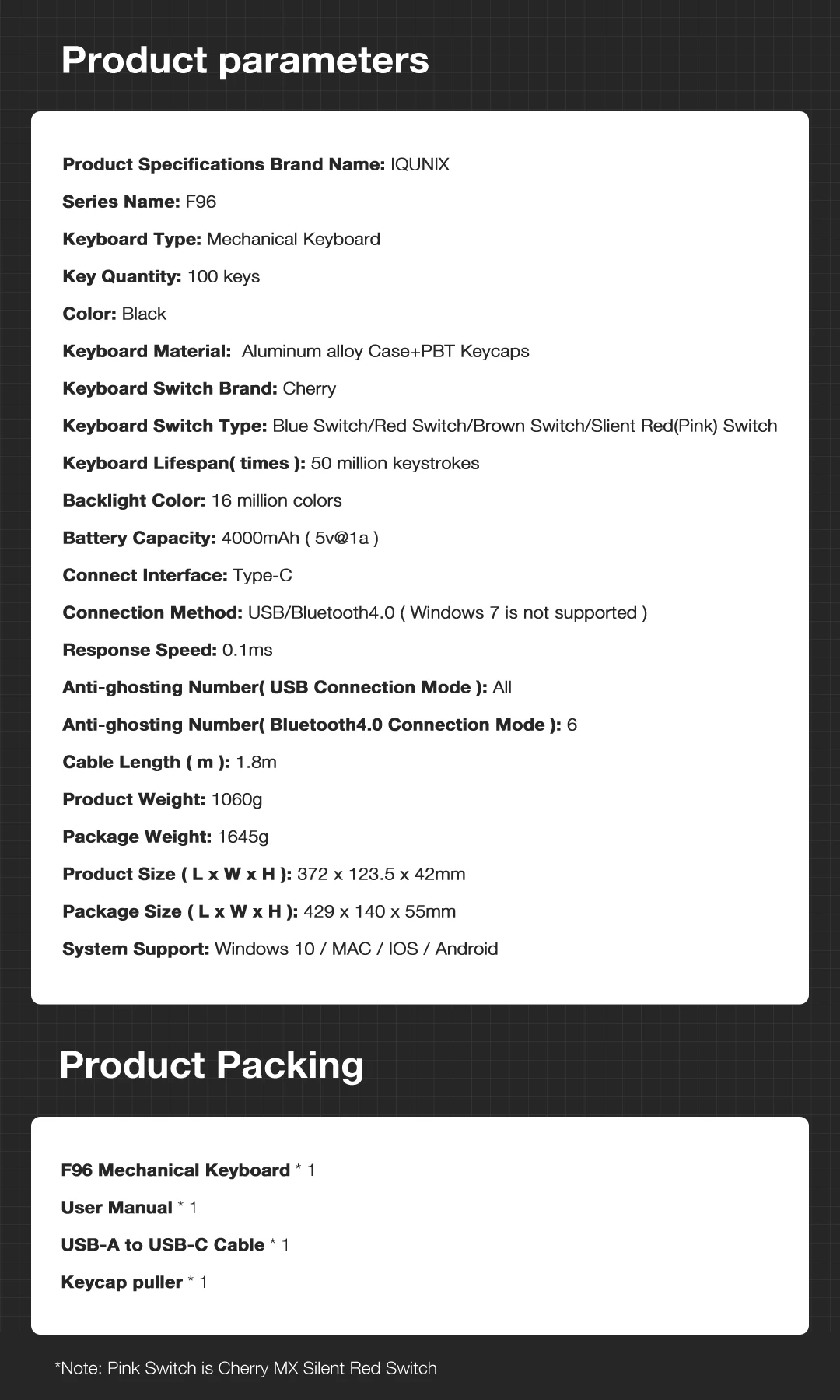 Отзывы о Клавиатура Iqunix F96-knight Беспроводная механическая алюминиевая клавиатура с Rgb