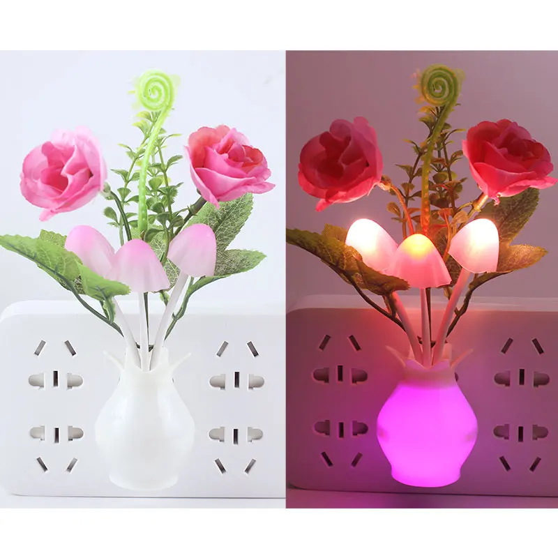 Романтическая роза в форме гриба СВЕТОДИОДНЫЙ Ночник светильник Красивая красочная пластиковая ваза Светодиодная лампа Свадебные украшения для дня рождения