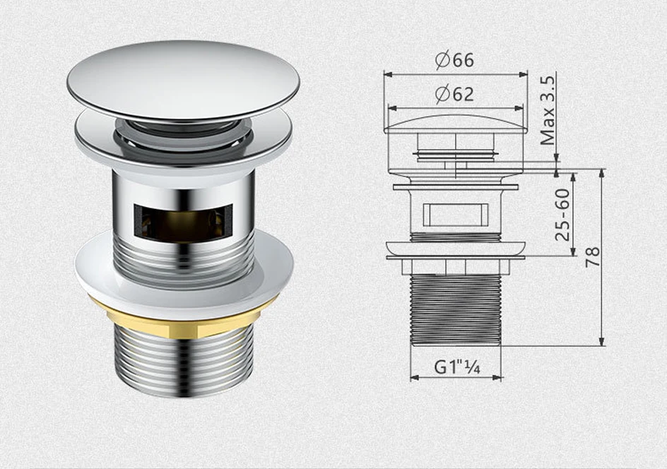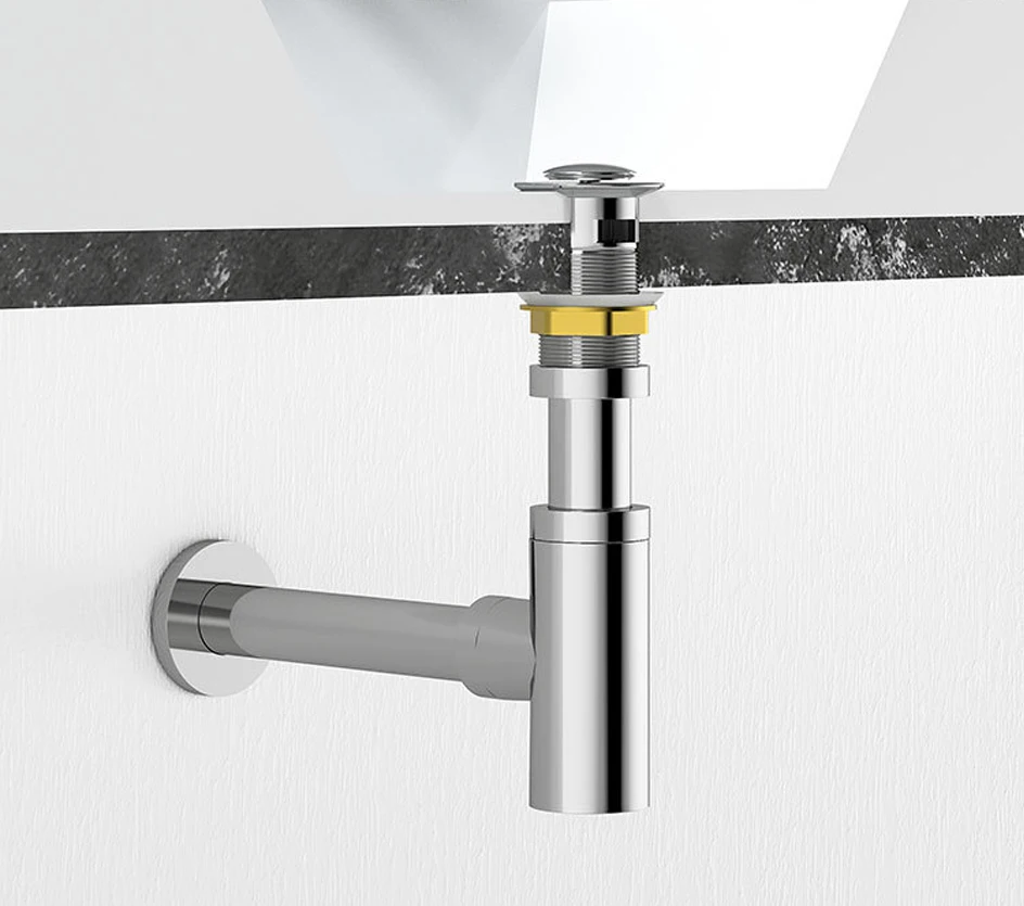 【Material】 Эта П-ловушка поставляется с латунным всплывающим сливом раковины, из нержавеющей стали P-Trap трубы в стене дренажной трубы.