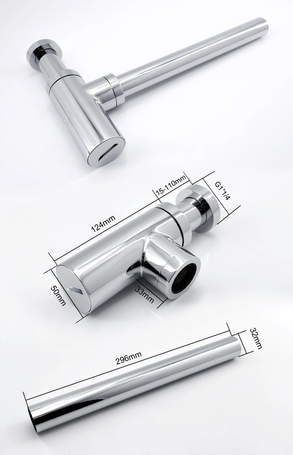 【Meet code】p-Trap предназначен для работы с 1-1/4 дюймовый сливной сборки, этот ловушка для бутылок включает удлинительную трубку, 110 - 200 мм регулируемую высоту и 300 мм регулируемую розетку.