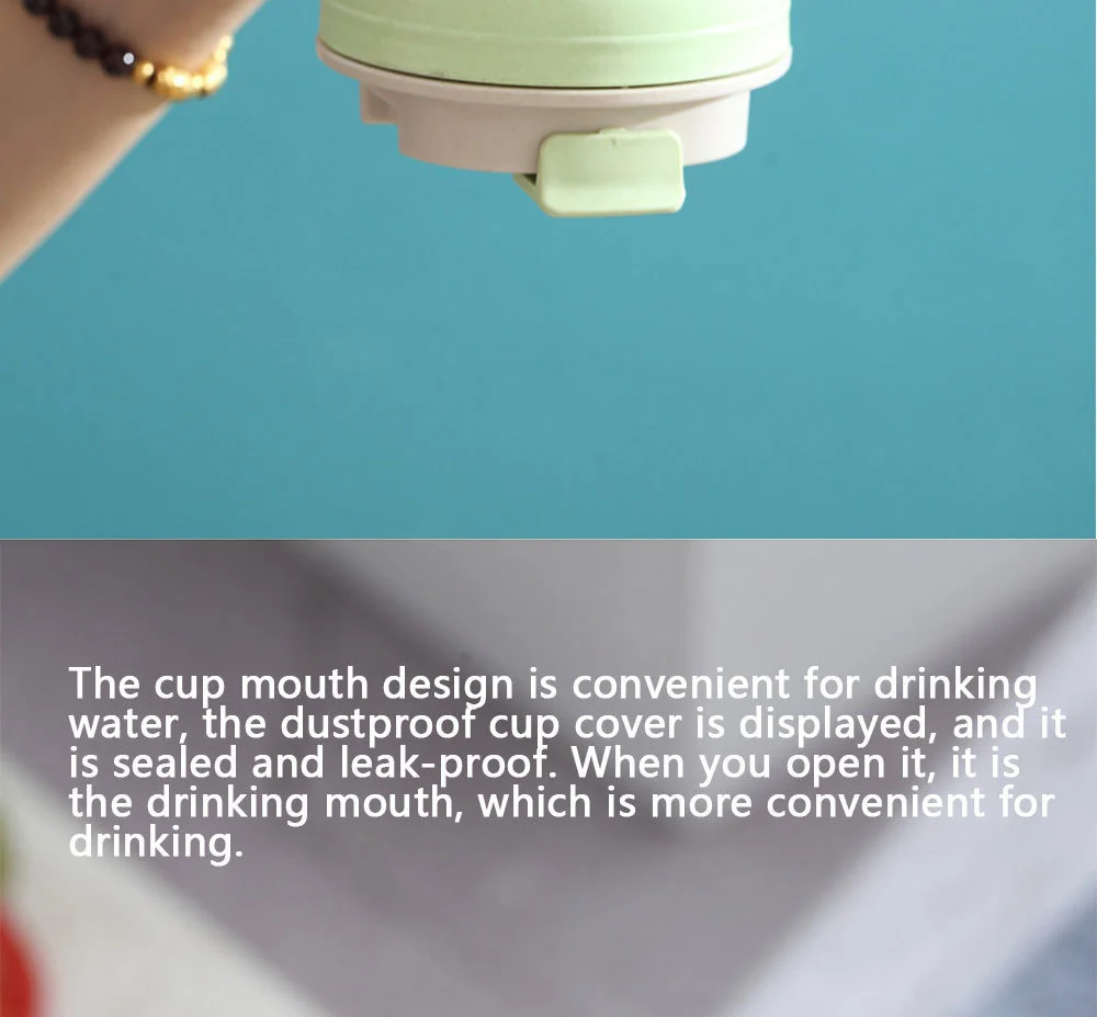 Конструкция чашки удобна для питьевой воды, отображается Пылезащитная крышка чашки, герметичная и герметичная. Когда вы открываете его, это питьевой рот, который более удобен для питья.