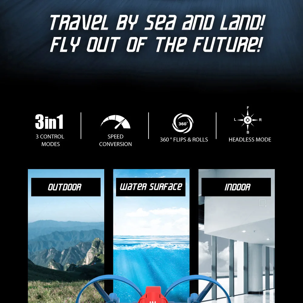 Отзывы о 2.4G 4CH DIY 3-IN-1 RC Sea&Land&Air 3D Tumble Light Drone EPP Anti-Drop Glider Mini Quadcopter Hovercraft Mode Kid Toy Gift - купить по