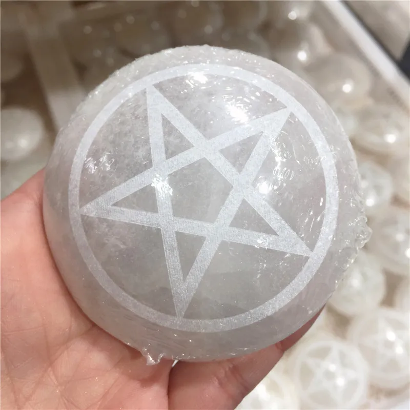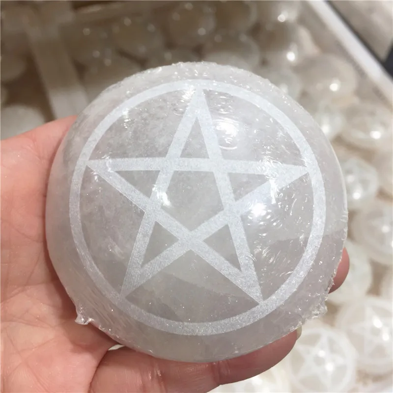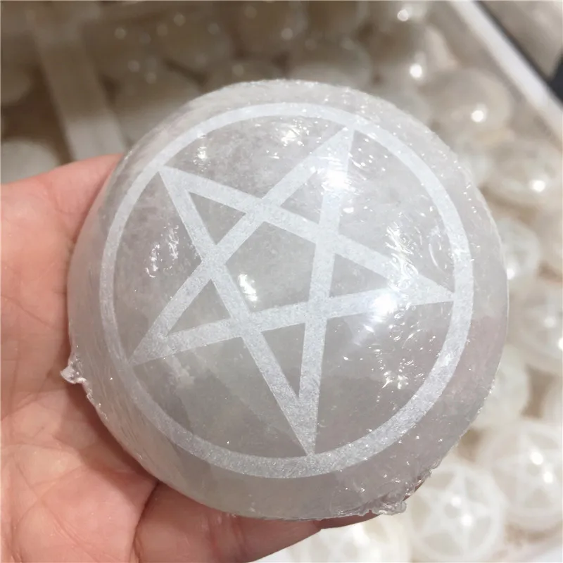 Отзывы о Природный белый кристалл селенит резьба по камню загадочная пентаграмма
