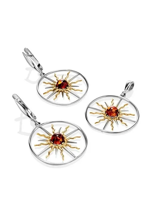 Отзывы о Оригинальный кулон из серебра с позолотой украшенный янтарём Алхимия - купить по