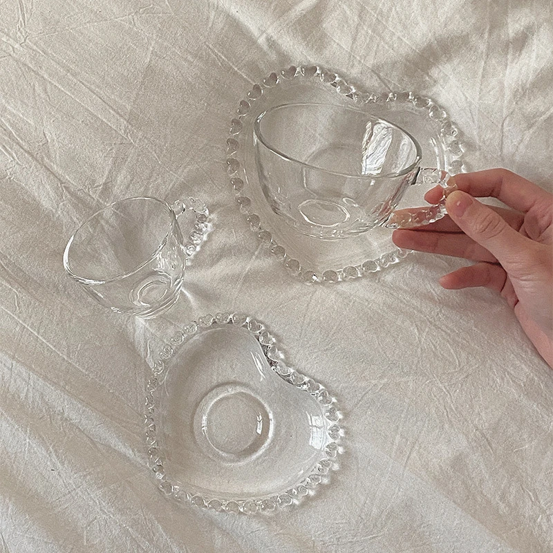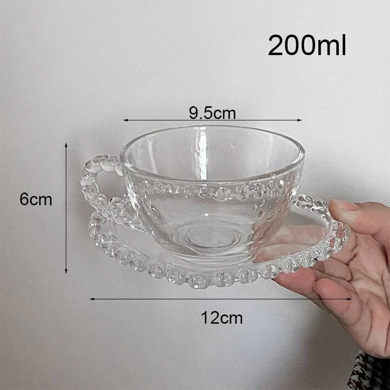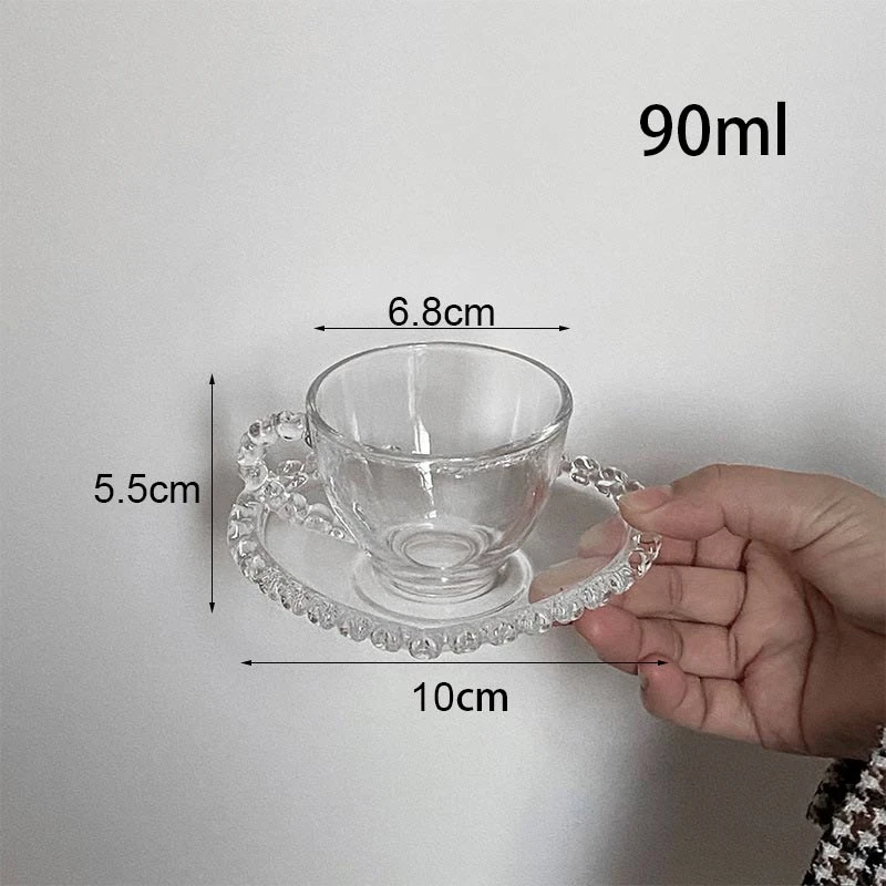 90 мл/200 мл романтическая стеклянная кофейная кружка с сердечком, набор тарелок с круглой ручкой из бисера, Молочный Сок, чашка для послеобеденного чая, чашка для эспрессоСпецификация: