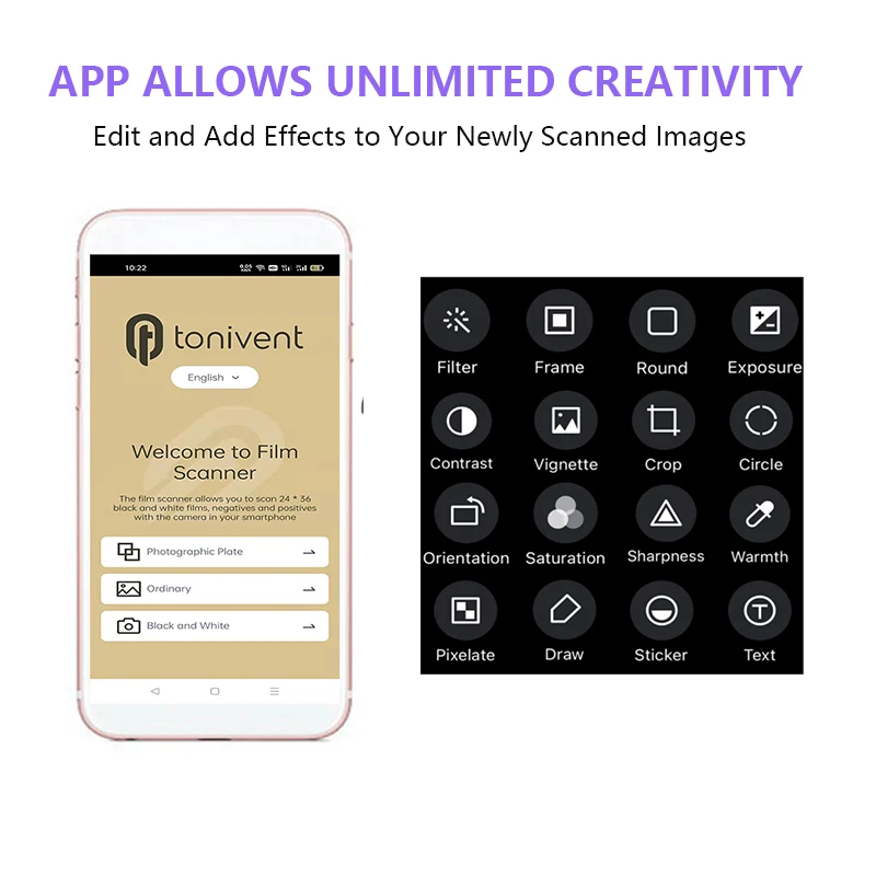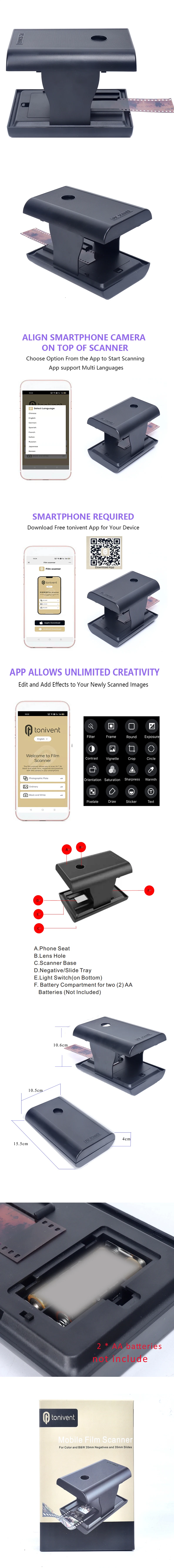 Переживайте старые фотографии-мобильный сканер TON169 позволяет сканировать и воспроизводить старые фильмы и слайды 35 мм с помощью камеры смартфона. Он совместим с 35m слайдами и негативами.