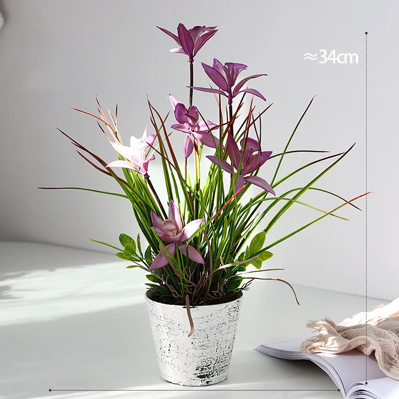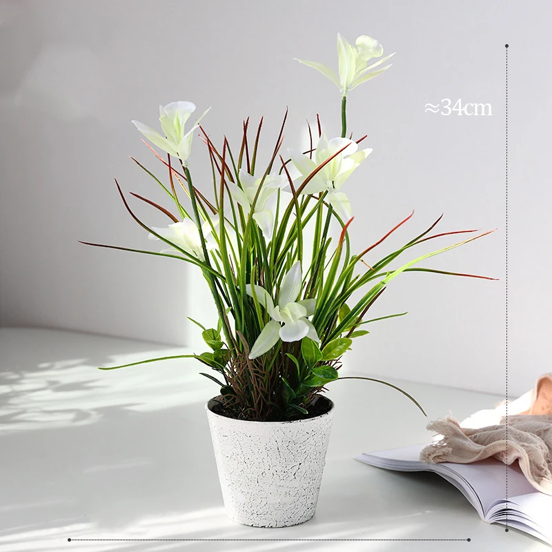 34 см искусственные растения в горшке искусственная Орхидея цветок бонсай пластиковые листья с горшком настольные поделки ложная трава для домашнего декора балкона