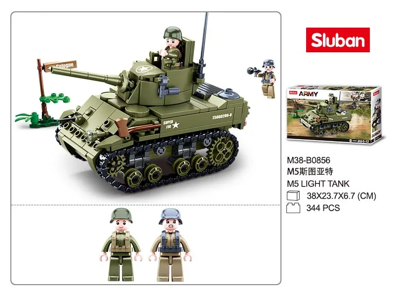 Отзывы о Конструктор Sluban игрушки WW2 армия M5 Стюарт Танк 344 шт. кирпичи B0856 военное