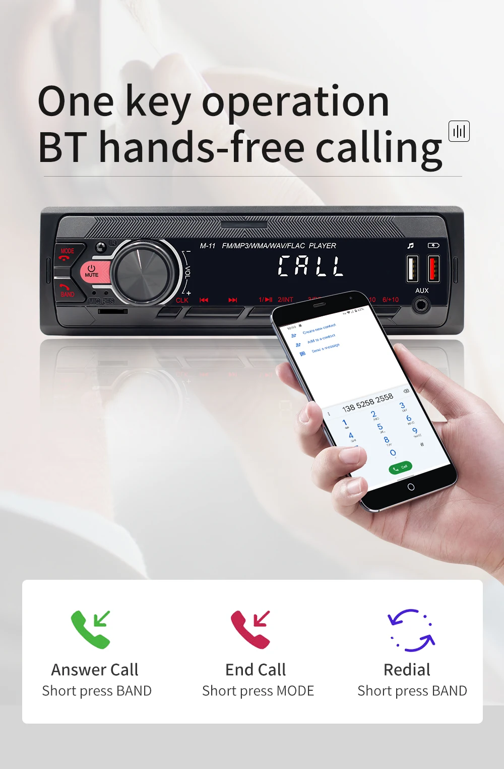 1 Din автомобильный радиоприемник Bluetooth USB MP3 плеер Hands Free A2DP Управление через приложение USB зарядка TF AUX ISO аудио Система головное устройство PHYEE M11