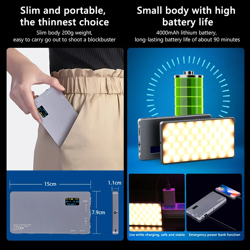 Портативный карманный видео свет: компактный и легкий для переноски даже в кармане. Как многофункциональный мини-светильник для фотосъемки, это идеальный светильник для видеоконференций, видеосъемки, интервью, трансляции в реальном времени, YouTube, студийный светильник ing.