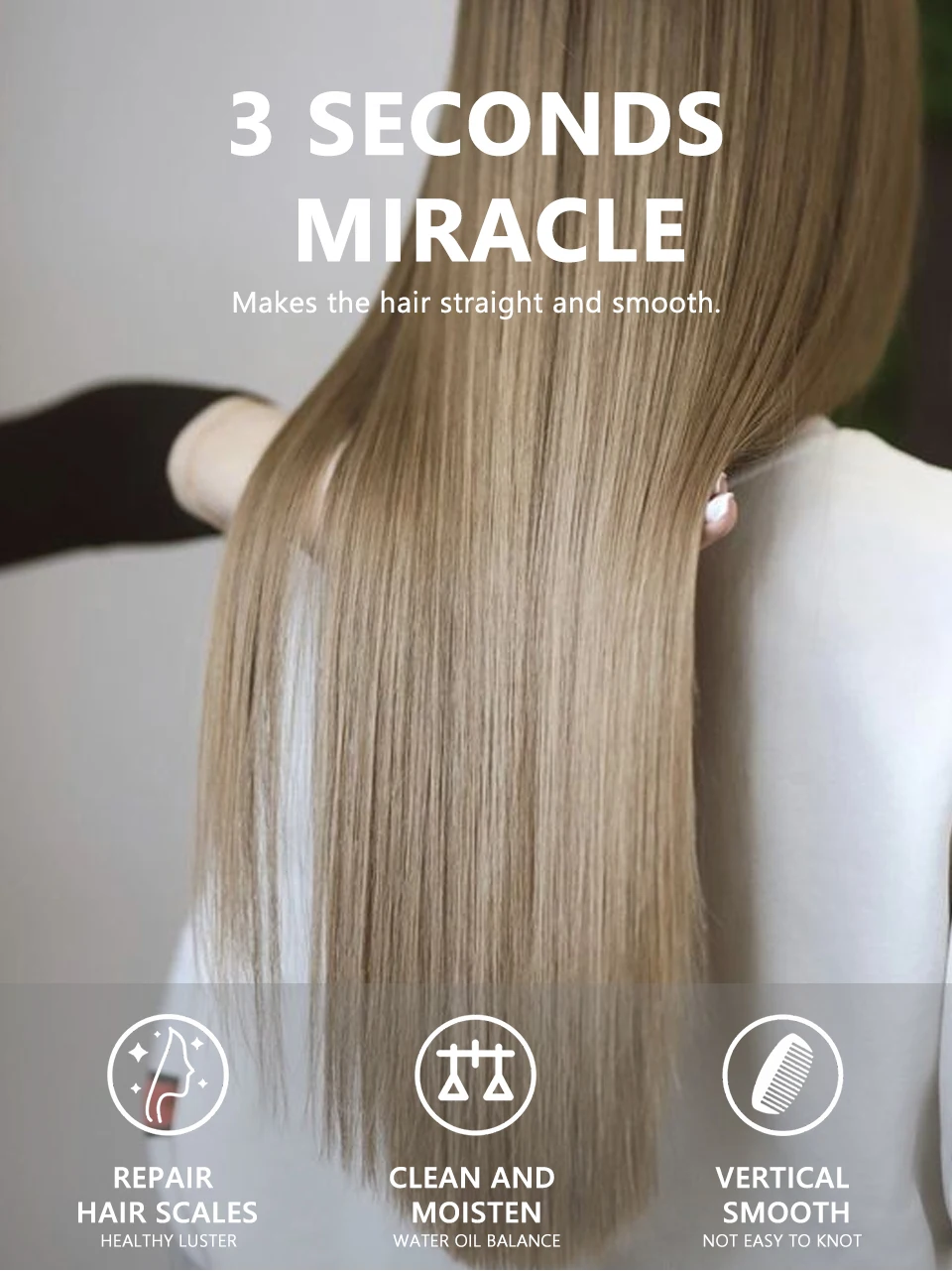 Содержит увлажняющие компоненты для ухода за волосами, защищает сухие и вьющиеся волосы, делает волосы прямыми и гладкими и легко расчесываются. Освежающая водянистая текстура делает процесс ухода за волосами более светлым и гладким.