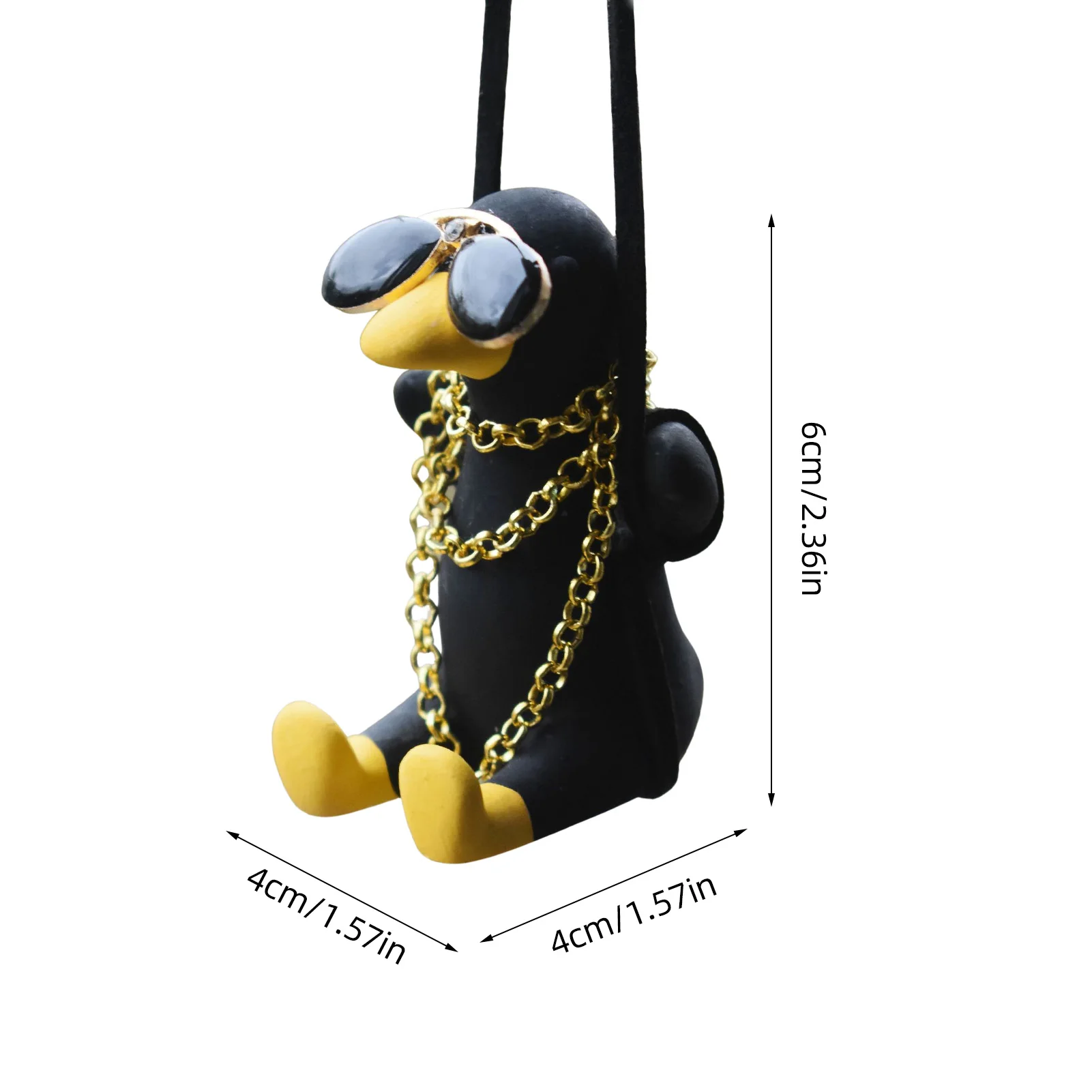 Черная уточка носит большие солнцезащитные очки, имеет 3 слоя золотая цепочка с подвеской, намотанный на шею, И сидит на качелях, своему уникальному и креативный внешний вид охлаждения и мило. Изготовлен из высокоплотного штукатурка, утка качели крепкий, надежный, чёрного цвета, с надписью тонкий и удобный на ощупь, и поставляется в комплекте с регулируемыми веревок для легкого завесы. Он будет влиять на счастливо, пока вы едете, который будет уменьшить усталость глаз и добавить много удовольствия для вашего автомобиля.