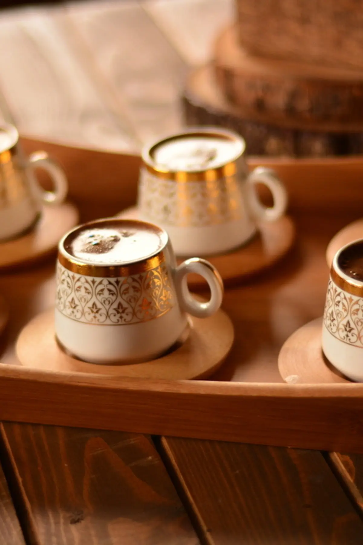 Кофейный набор на 6 человек, который сочетает естественность бамбука с османскими мотивами