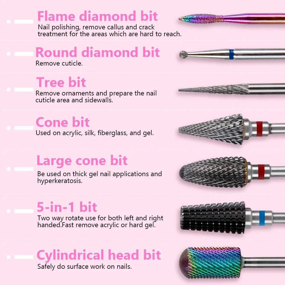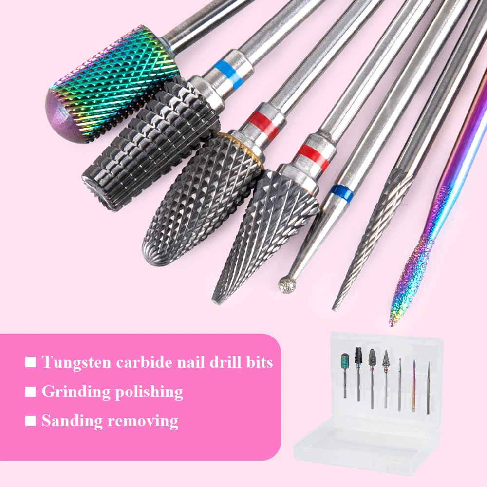 Набор сверл для ногтей, 7 шт., для акриловых ногтей, 3/32, электрический набор бит для ногтей, профессиональный набор сверл для ногтей из карбида, для геля