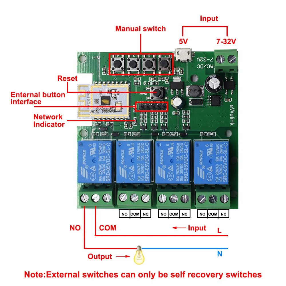 Совместим с любыми бытовыми приборами (AC DC7-32V 85-250V 10A 2200W) небольшой модуль имеет возможность DIY для пользователей с базовыми знаниями электрика