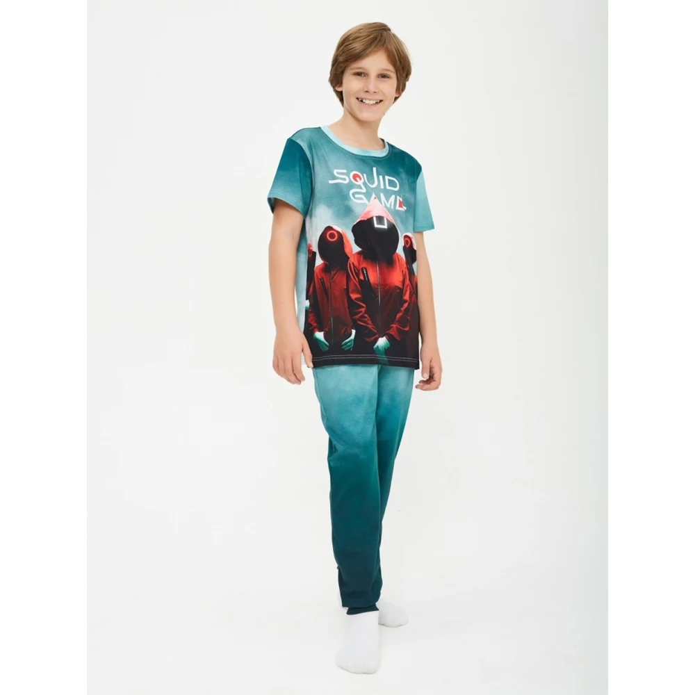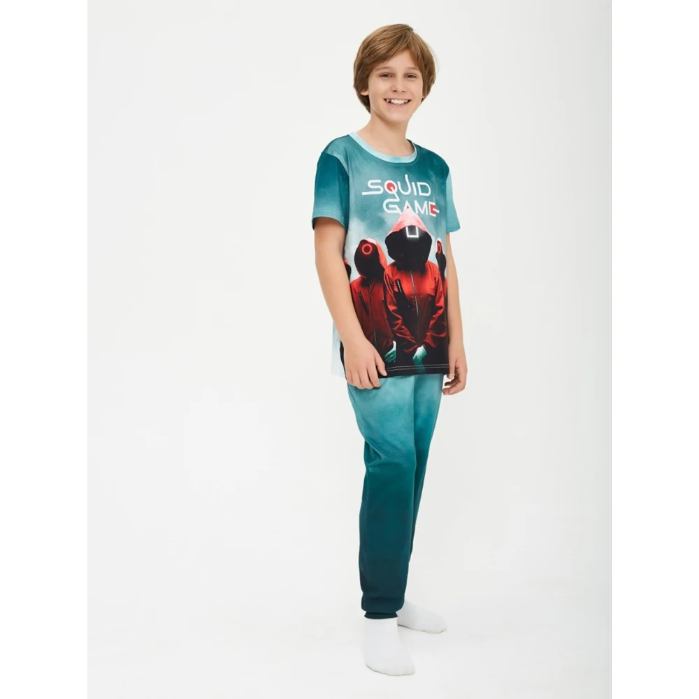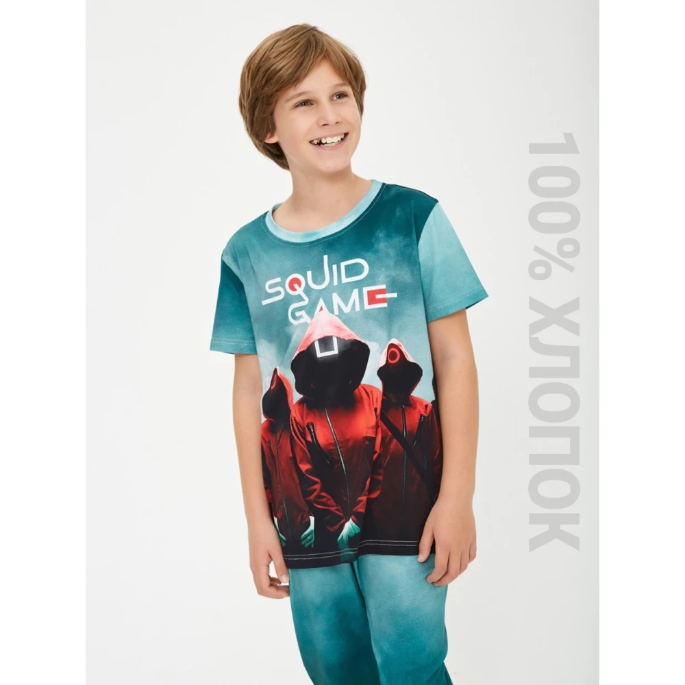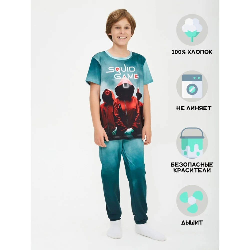 Детская пижама c принтом из знаменитого сериала Игра в Кальмара из 100% хлопка - не оставит равнодушным ребенка!