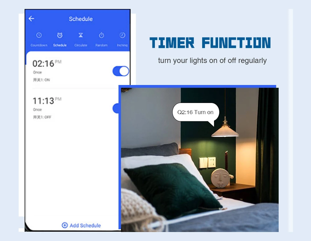 1. Режим инчинга: переключатель на канале 1, канал 1 будет автоматически закрыт через 1 секунды. Время ввода может быть установлено в приложении