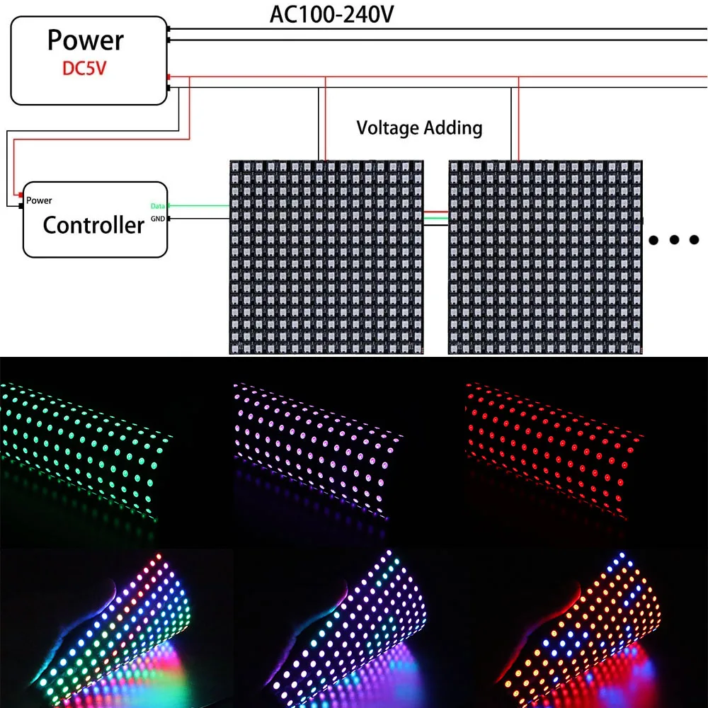 Работает с программируемым sd-контроллером (не входит в комплект), он может сделать гибкий светодиодный экран