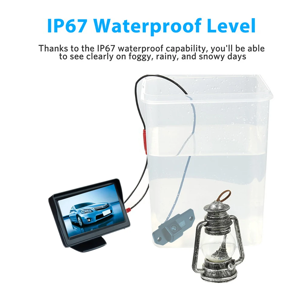 - Водонепроницаемость IP67, не беспокойтесь о том, чтобы вернуть ваш автомобиль даже в дождливый день. Эта камера также устойчива к ударам, что обеспечивает лучшую производительность и гарантирует безопасное вождение.