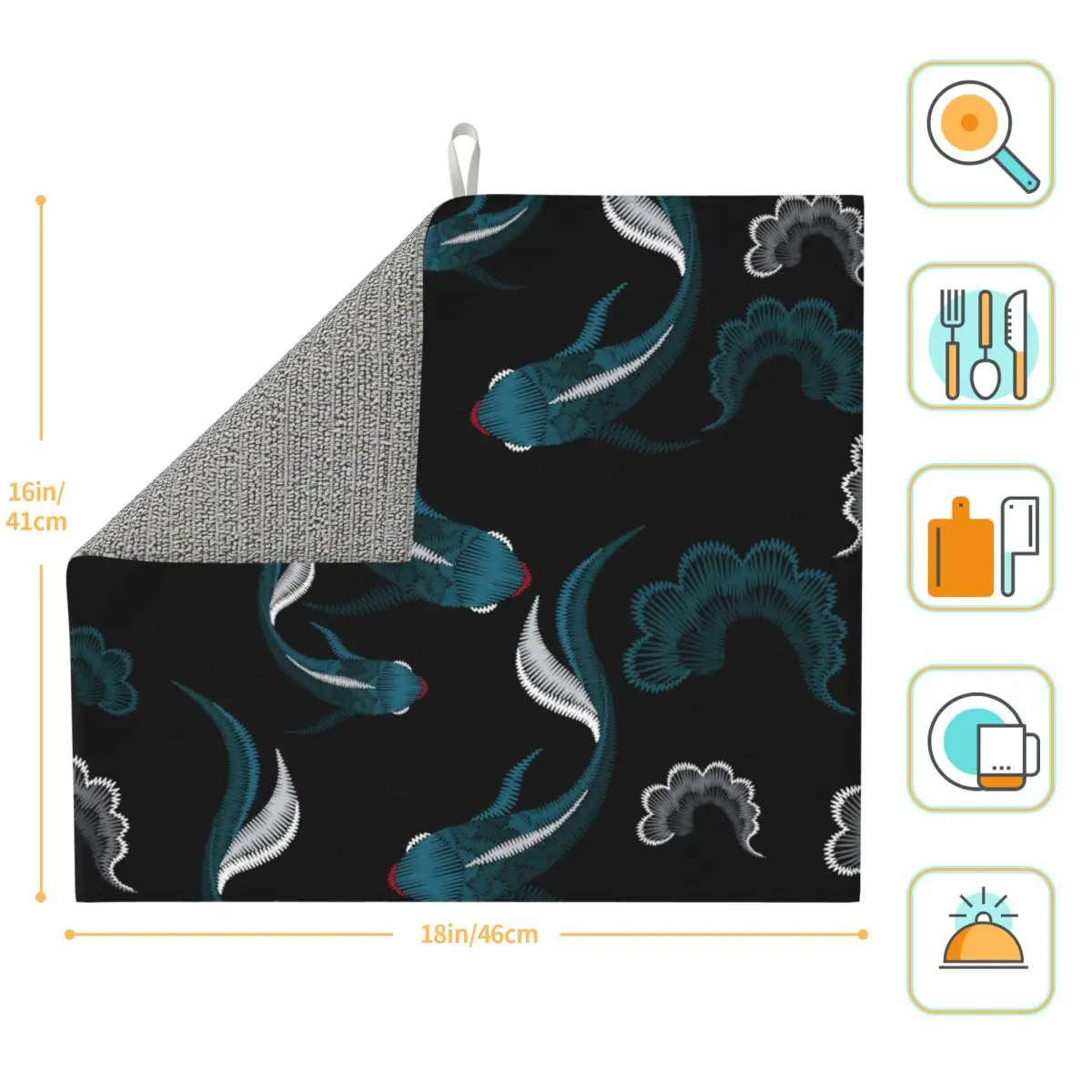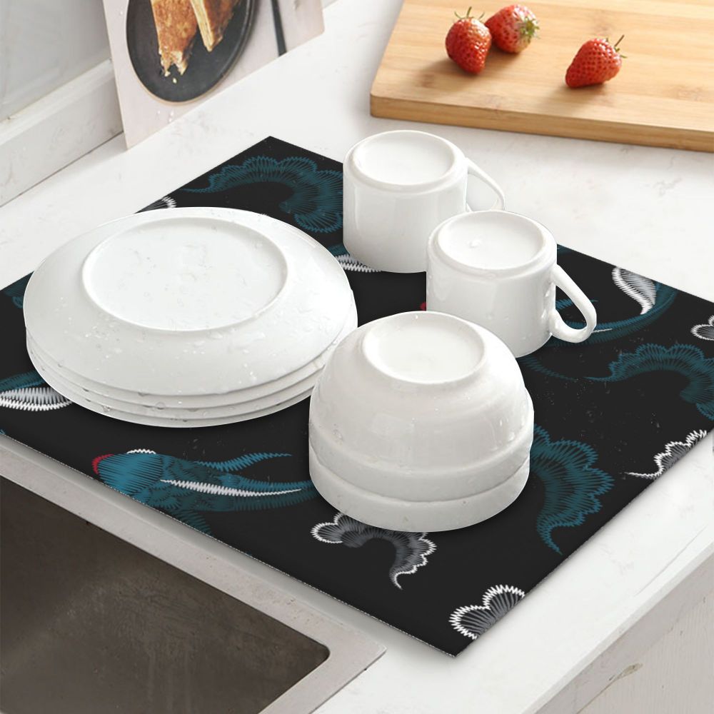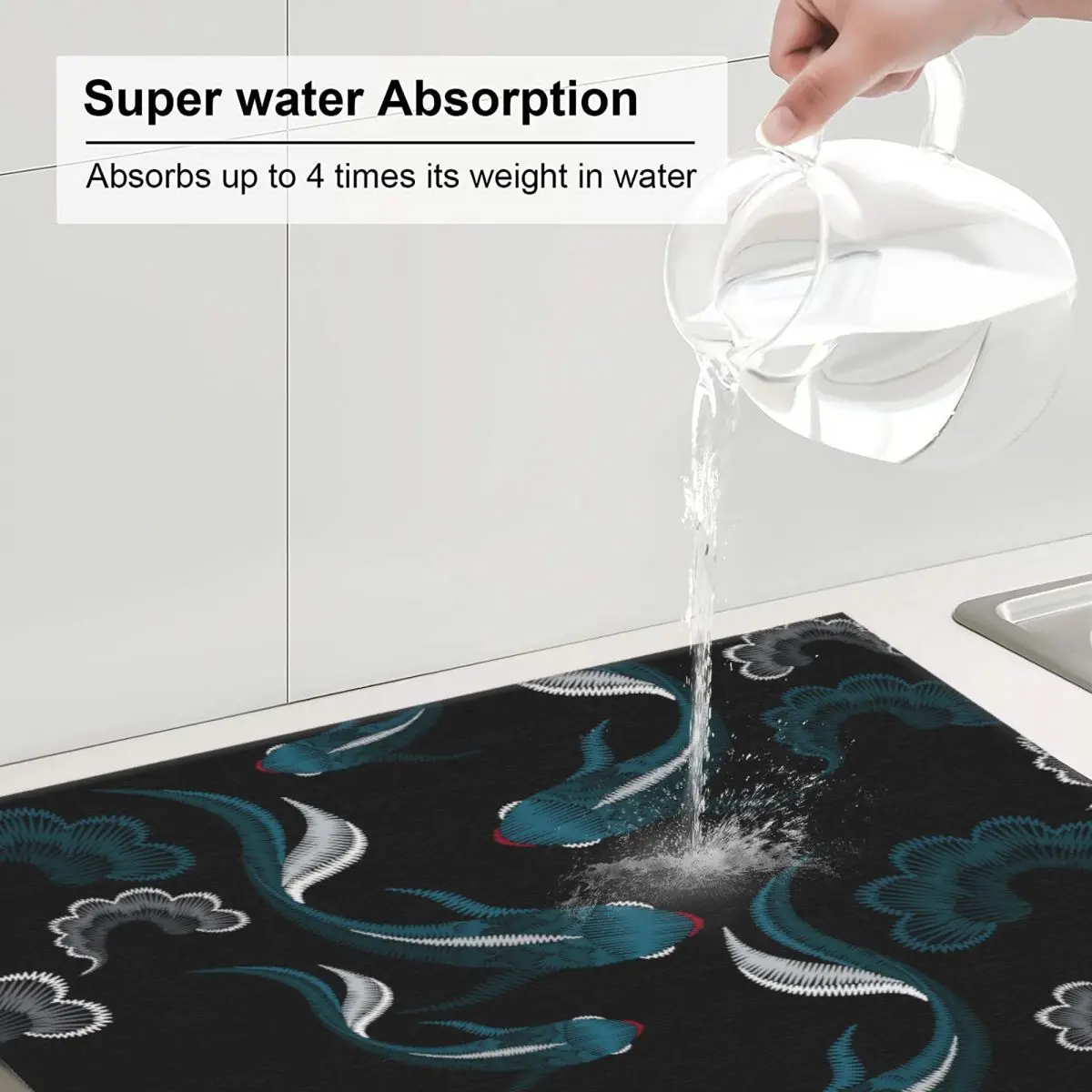 Отзывы о Кухонный коврик для сушки посуды вышитый синий этнический кои Рыбка моющийся