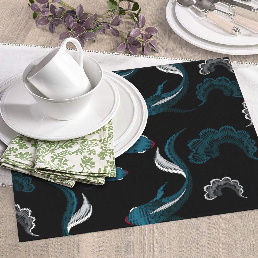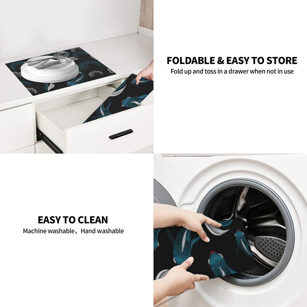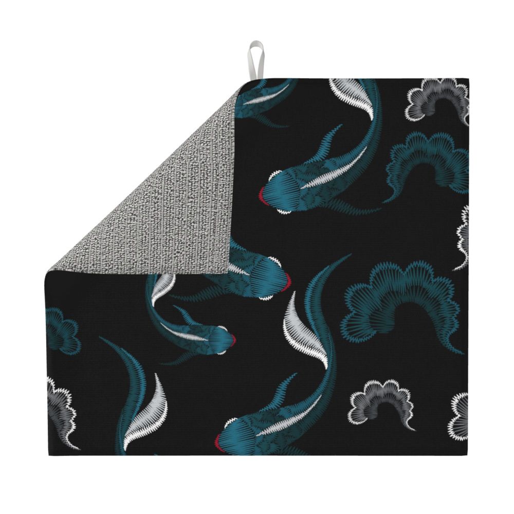 Отзывы о Кухонный коврик для сушки посуды вышитый синий этнический кои Рыбка моющийся