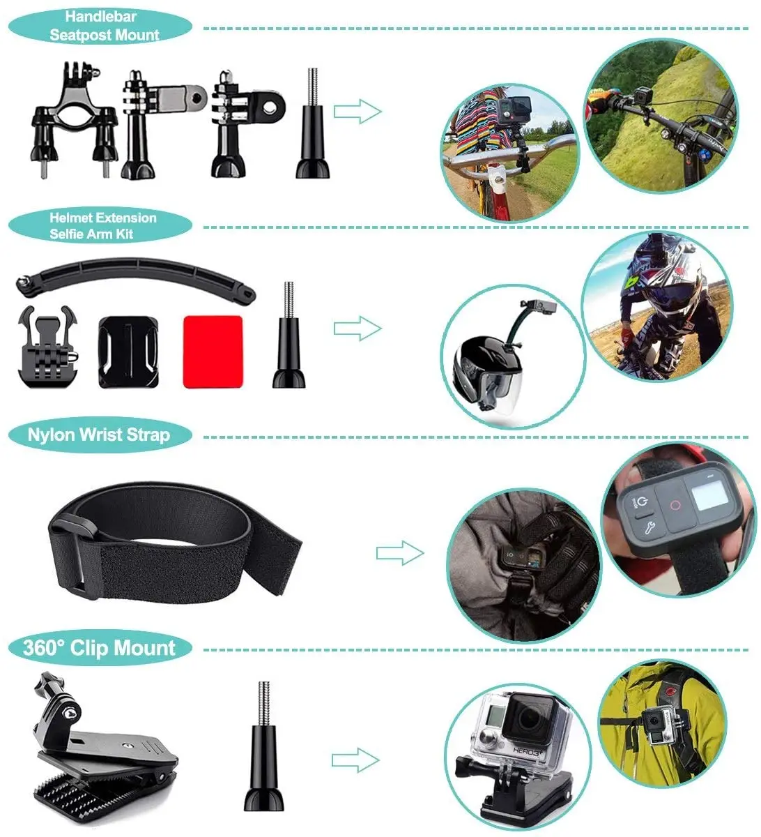 Отзывы о Набор аксессуаров для экшн-камеры GoPro Hero 10 9 8 Session 5 Insta360 Xiaomi Yi DJI AKASO Campark 42 шт. -