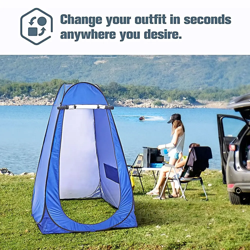 Всплывающая душевая палатка-палатка для раздевалки может складываться за считанные секунды, сборка не требуется. Сверхлегкая конструкция обеспечивает легкую транспортировку вместе с сумкой для переноски. Легко и быстро установить и сломать, никаких инструментов не требуется, удобно и быстро.