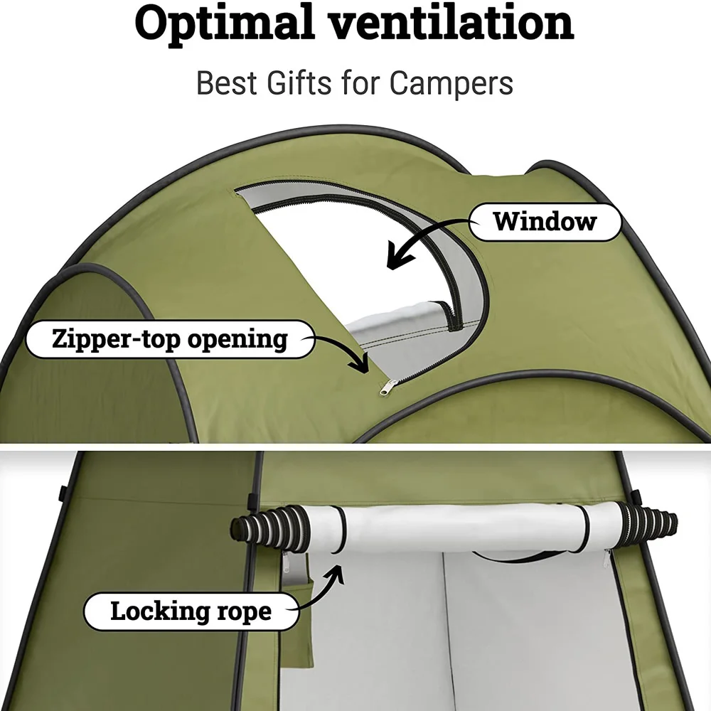 Широкое применение: портативная палатка отлично подходит для использования в качестве наружных туалетов, душевых палаток для смены/гардеробной, кемпинга/рыбалки. Это идеальное укрытие для открытого поля, пляжа, леса, путешествий, игр, сбора, шоу-деятельности. Закрытый дизайн крыши гарантирует конфиденциальность.