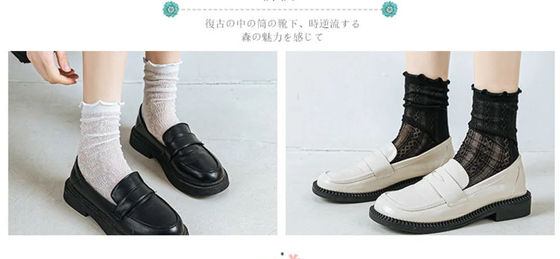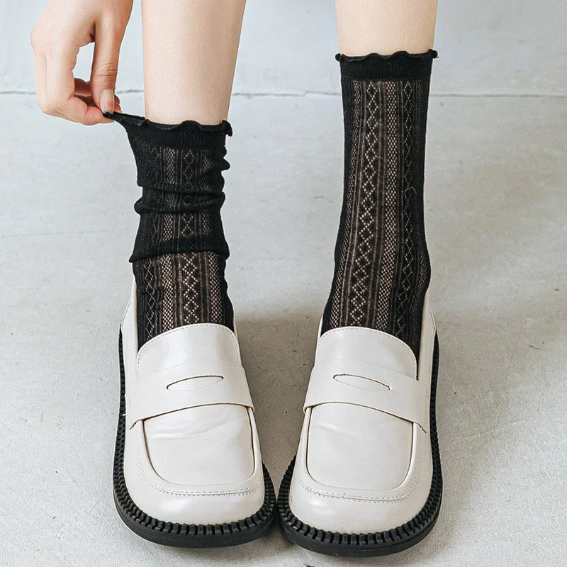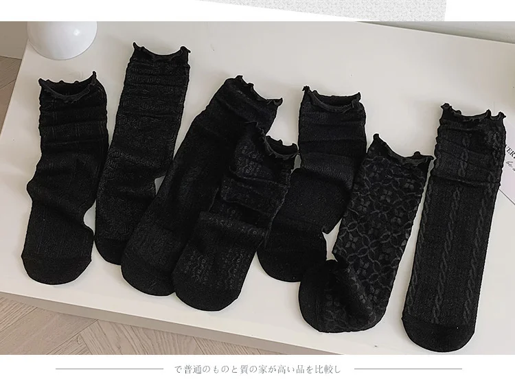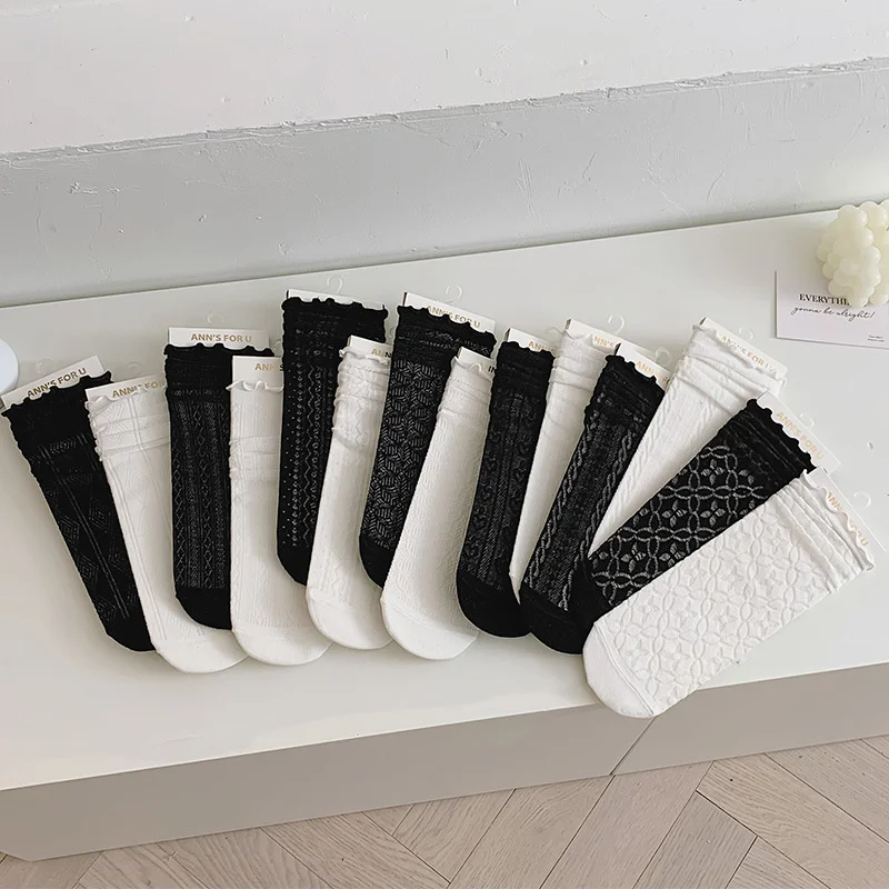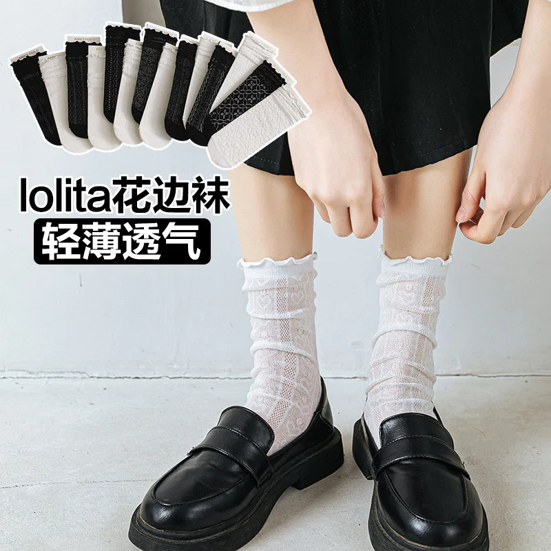 Женские кружевные носки в стиле Лолиты, черные, белые, дышащие, хлопковые, повседневные, хипстерские