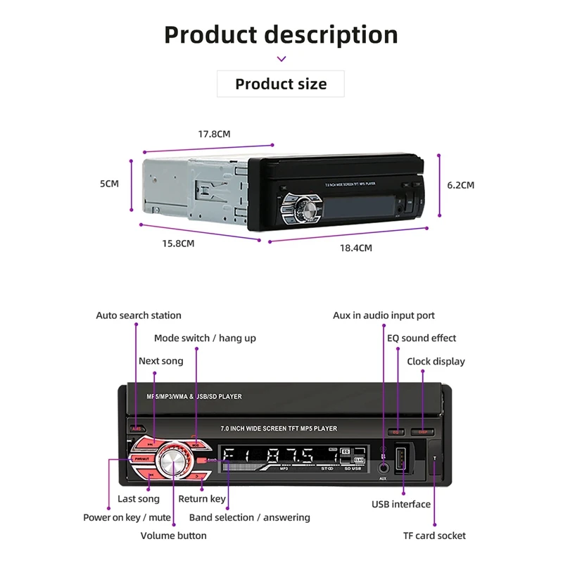 Отзывы о Топ!-7-дюймовый HD выдвижной экран Carplay аудио MP5 1 Din радио-магнитофон Bluetooth плеер для