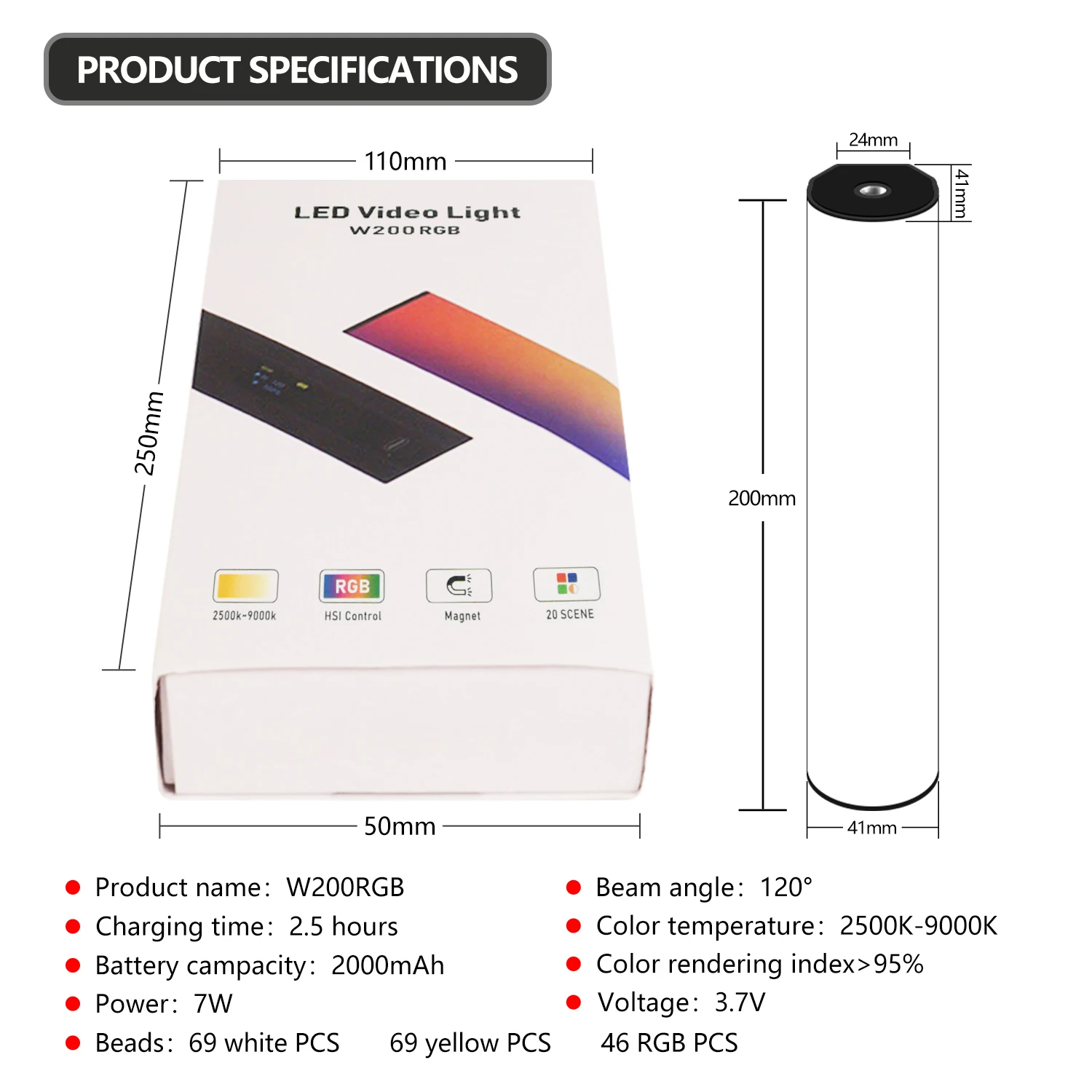 Цветовая температура: 2500-9000 ± 200k