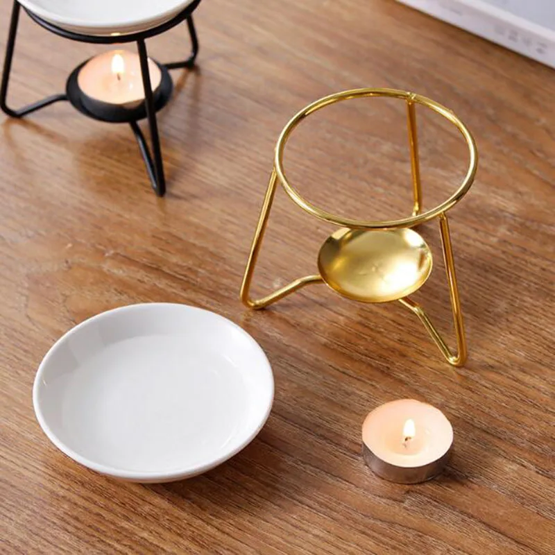 Креативная металлическая стойка, керамическая чаша, Арома горелка, черный, золотой, серебряный цвет, ароматизатор, свеча с эфирным маслом, держатель для домашнего декора