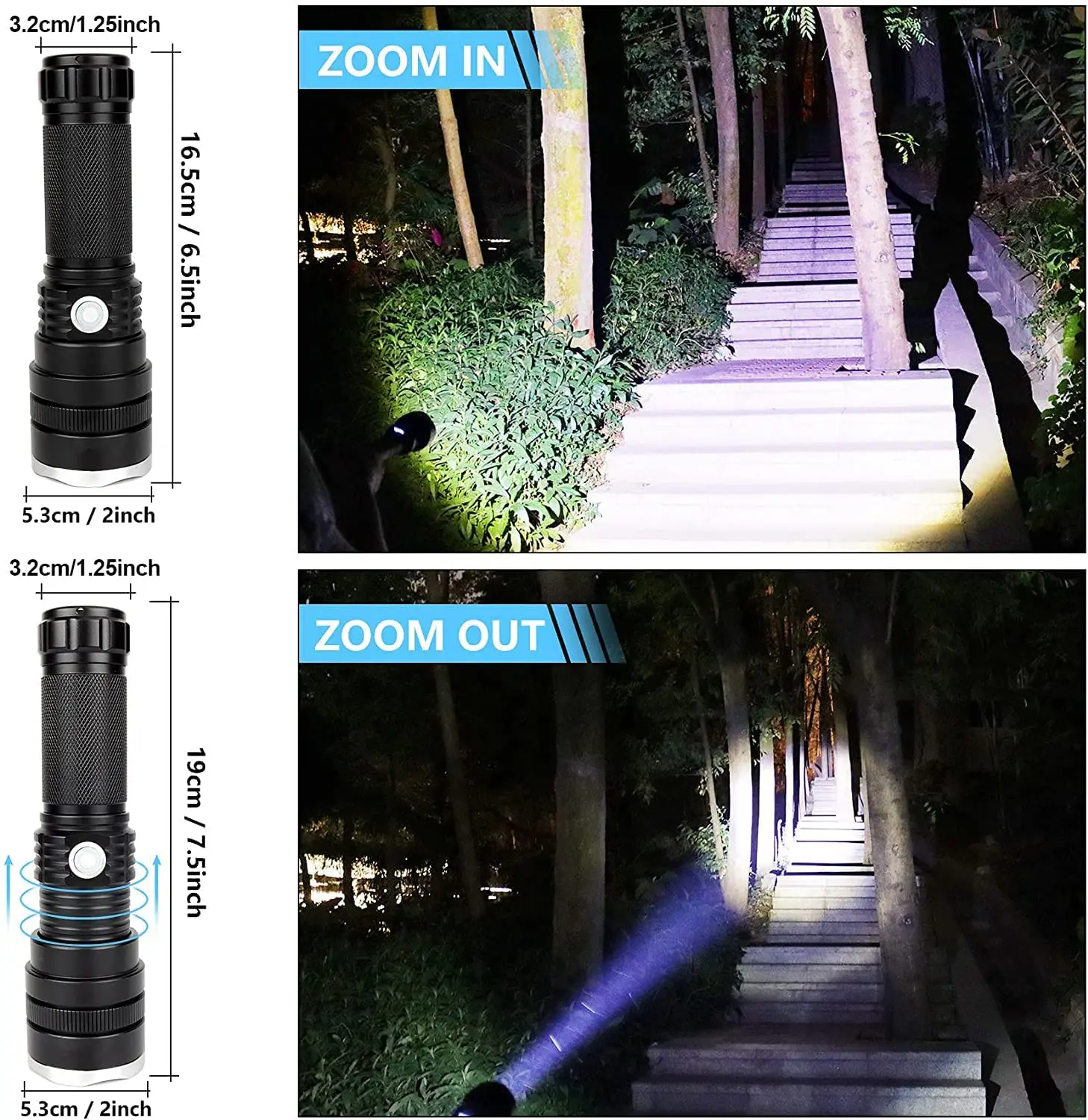 ✅【 Телескопический зум-объектив с флэш-светильник 】: может быть телескопическая и фокусировки, просто вращать фонарь на голову для регулировки зума. Вы можете выбрать фокусное расстояние между Точечный светильник источник и наводнение светильник. Прожекторы используются для дальнего наблюдения, а прожекторы используются для широкого освещения.