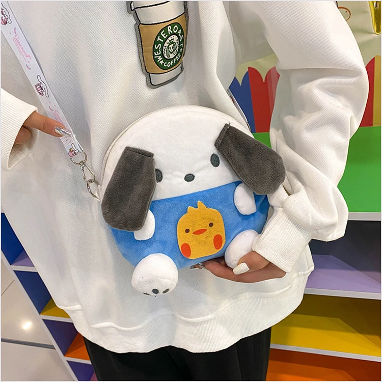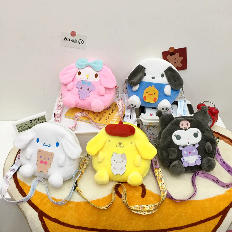 Kawaii плюшевый рюкзак Cinnamoroll Sanrio My Melody Kuromi Plushie, сумка для собаки, мягкие рюкзаки из аниме, подарки для девочек