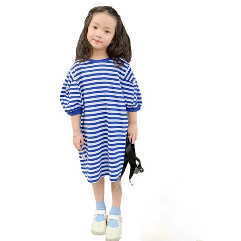 Отзывы о Платье-футболка для девочек Полосатое платье-свитер с длинным рукавом средней
